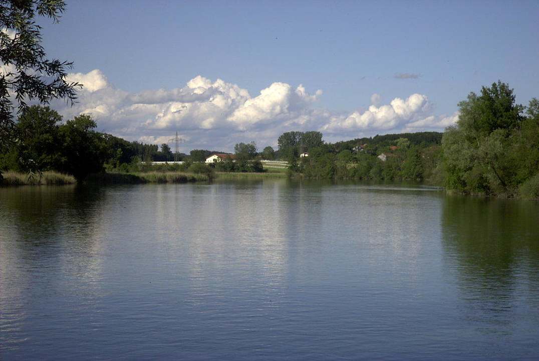 Vom Biergarten aus auf den Fluß