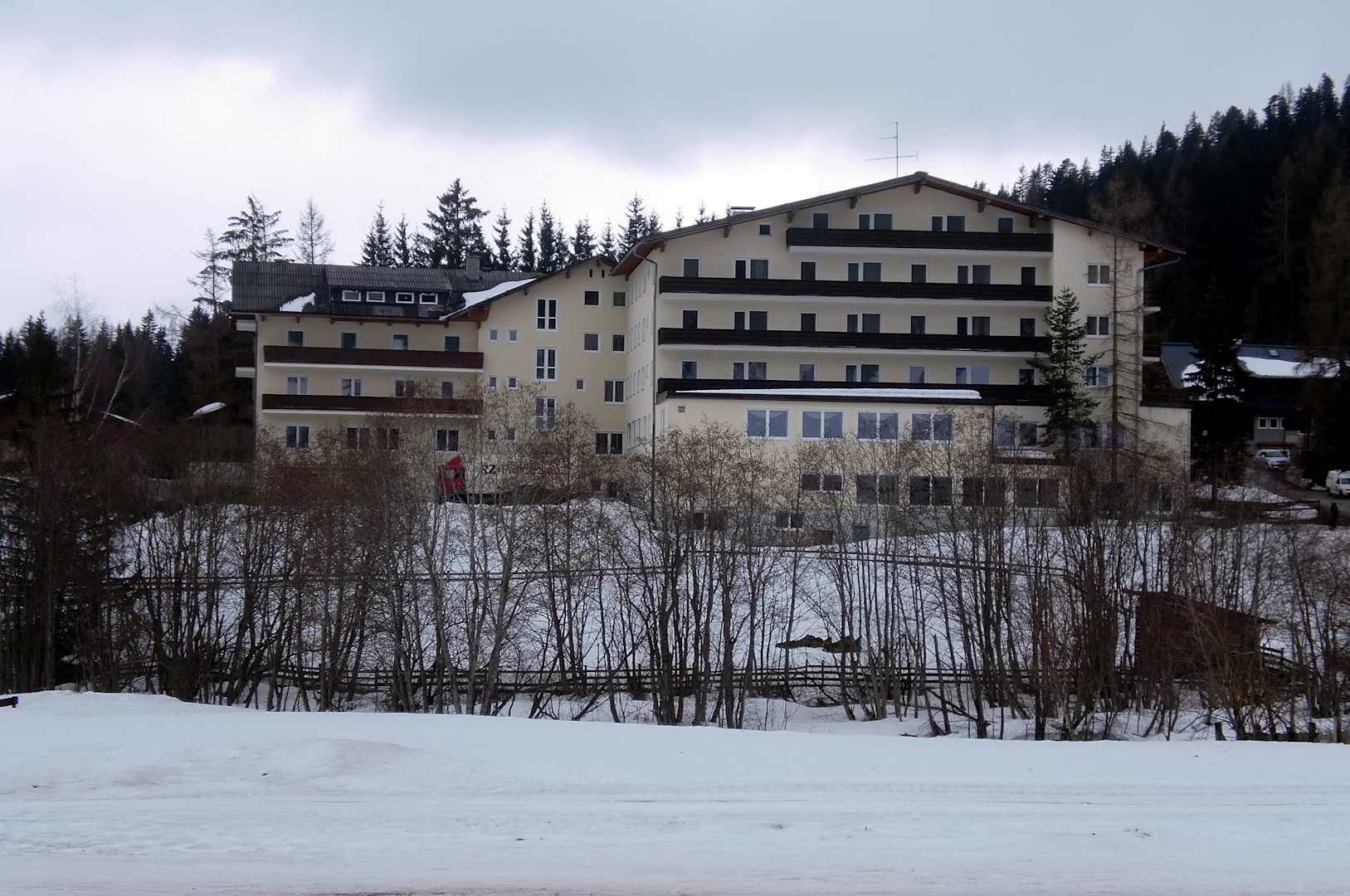 Blick von der Loipe zum Hotel
