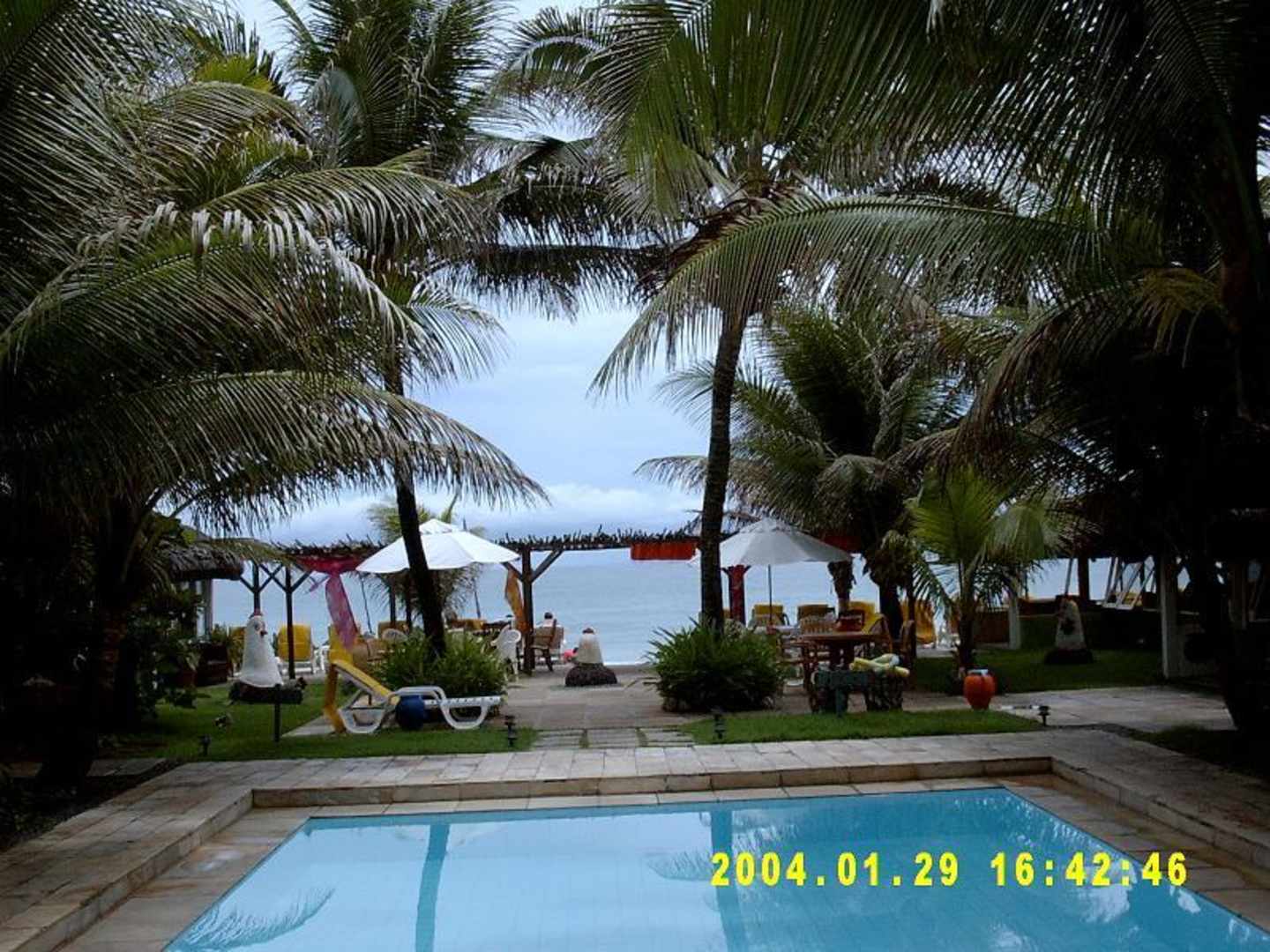 Pousada Tabajuba, Porto de GalinhasBlick vom Swimming Pool der Pousada Tabajuba, Porto de Galinhas, auf den davor liegenden Strand