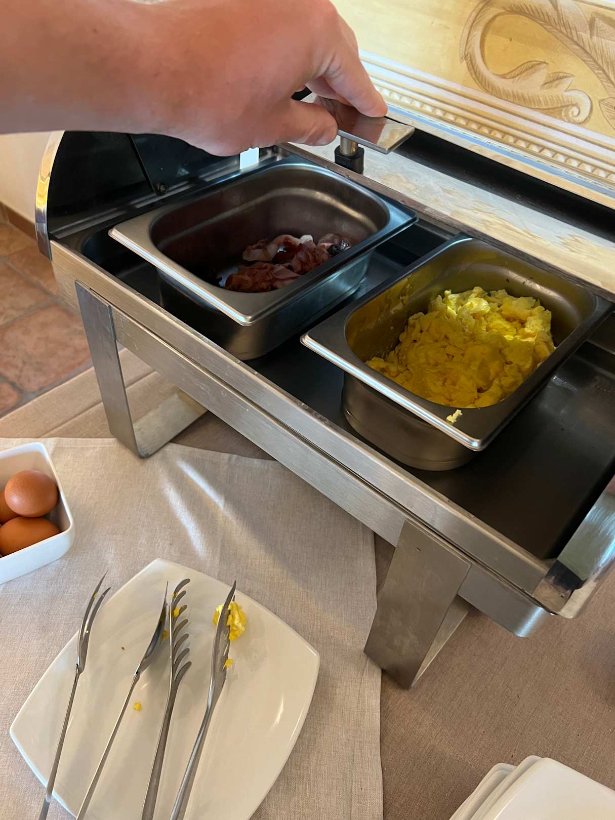 Rührei und Bacon (lauwarm bis kalt)