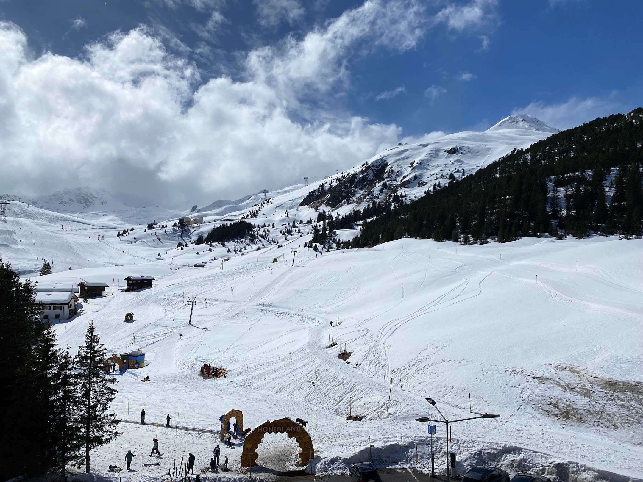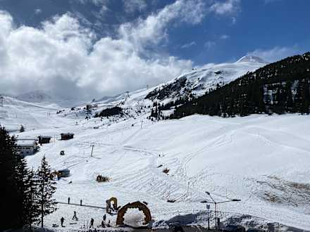 Der Ausblick vom Zimmer auf das Skigebiet.