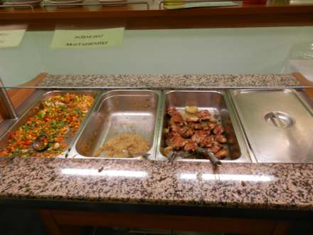 Abendbüffet um 19:15... Eine Hauptspeise ist leer, wird nicht nachgefüllt. Die Hühnchen gab es am Vortag als "Grillhähnchen", an diesem Tag als "Räucherhähnchen"