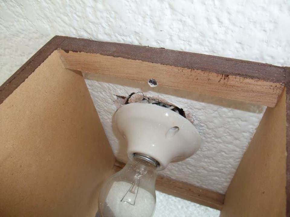 Auch die Leuchte am bett ist in einem schlechten Zustand.