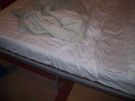 durchgelegene Matratze und fleckige Bettwäsche--eklig!