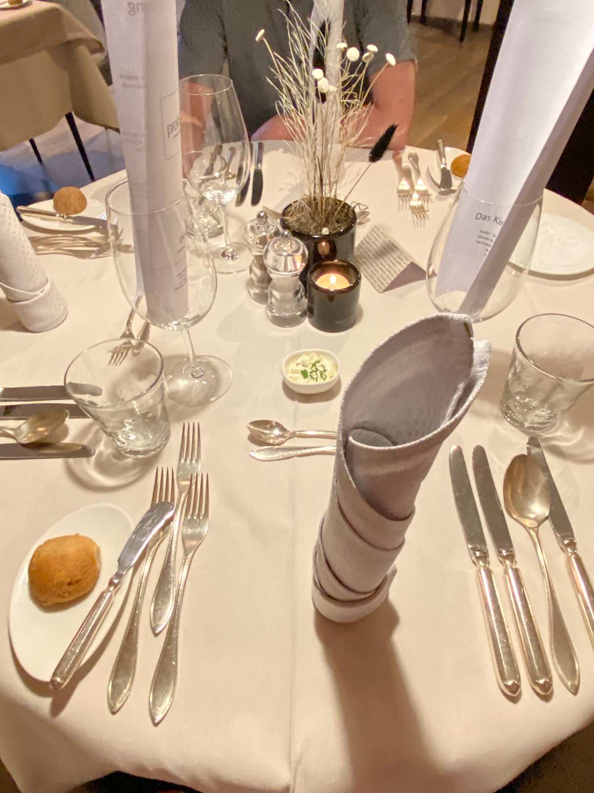 Fester Tisch im Restaurant, jeden Tag anders eingedeckt