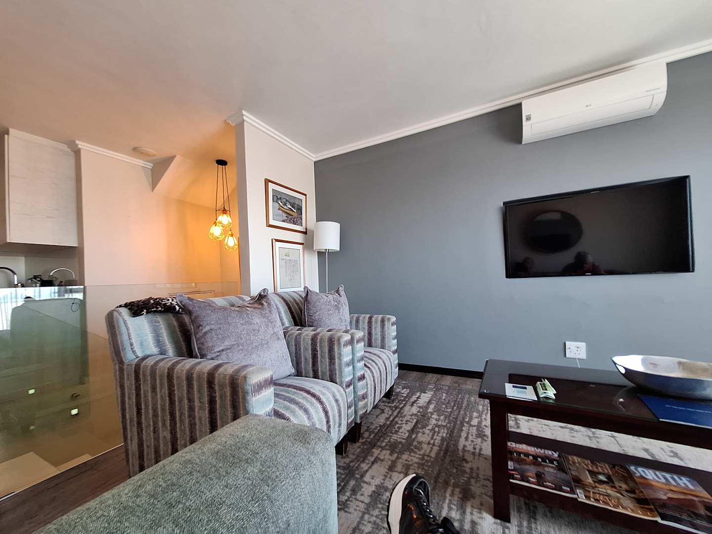Oberer Teil der Suite - hinter der Glaswand führt die Treppe nach unten zu Schlafzimmer und Bad