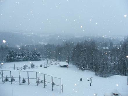 Panorama widoczna z okna w zimę