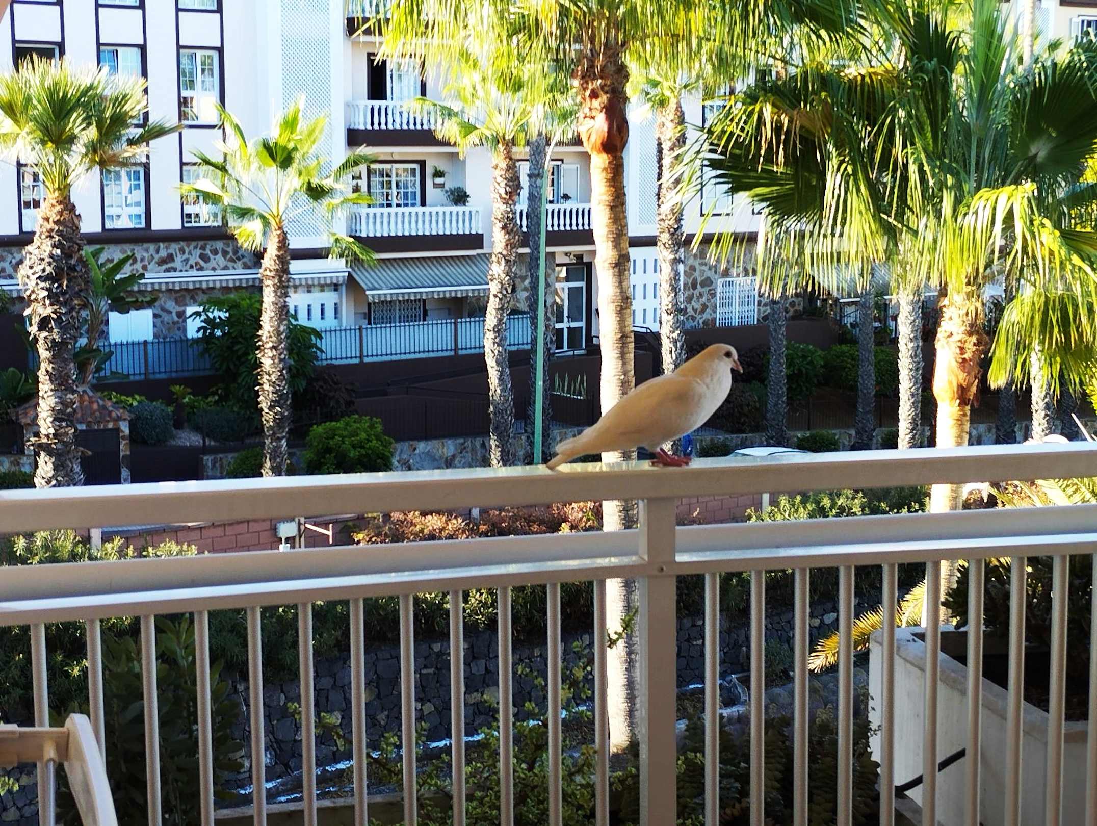 Balkon mit weißer Taube