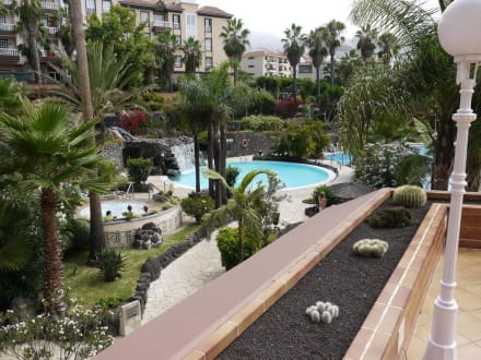 Blick von der Terrasse auf den großen Pool