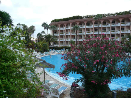 Blick auf Pool und Hotel