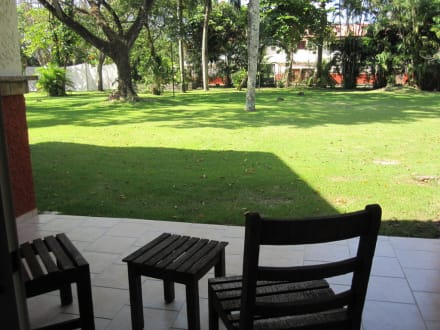 Ausblick vom Zimmer im Erdgeschoss auf die Terrasse