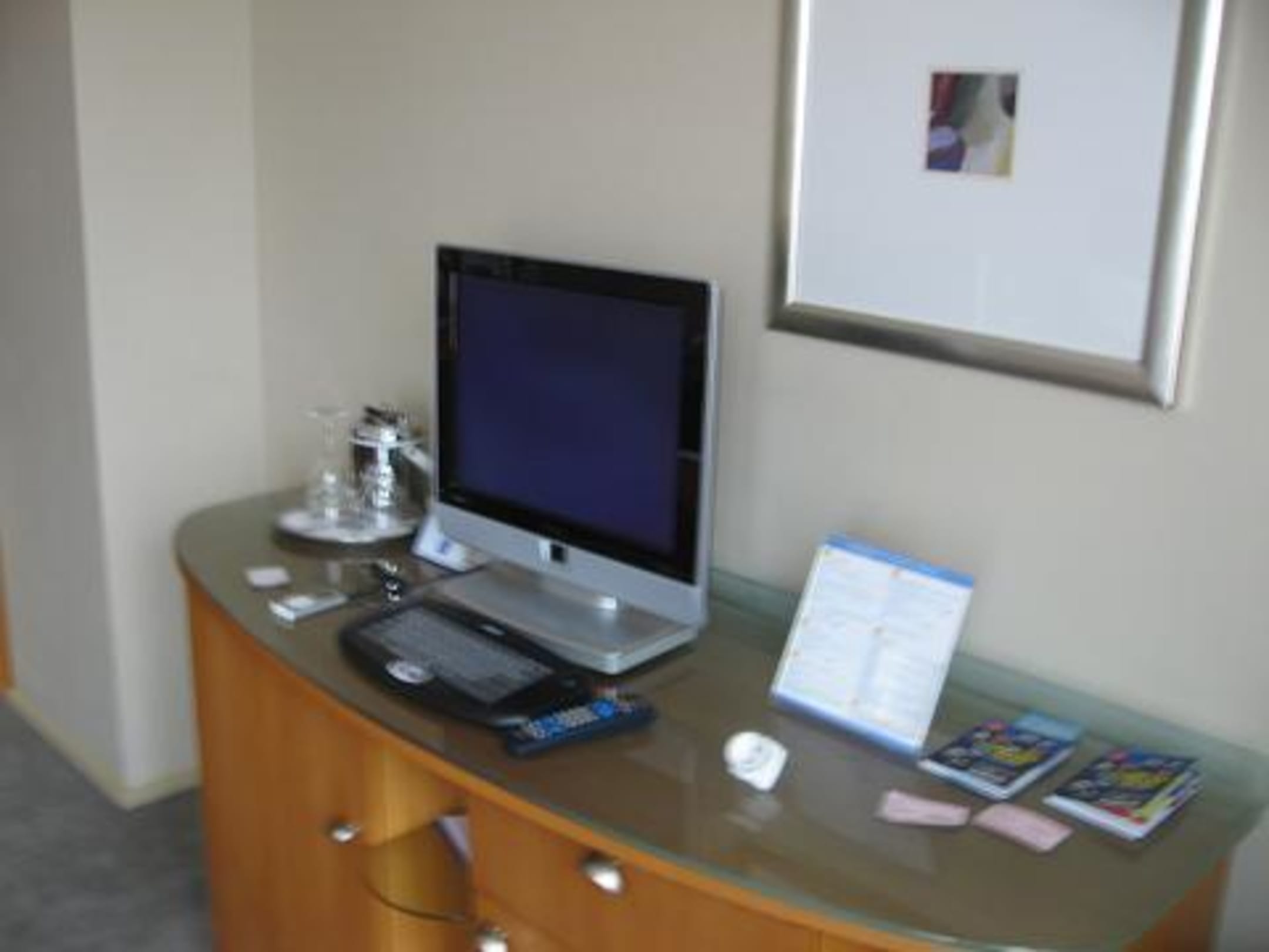 Flatscreen-Fernseher im Zimmer, an den man auch seinen mp3-Player anschließen kann!