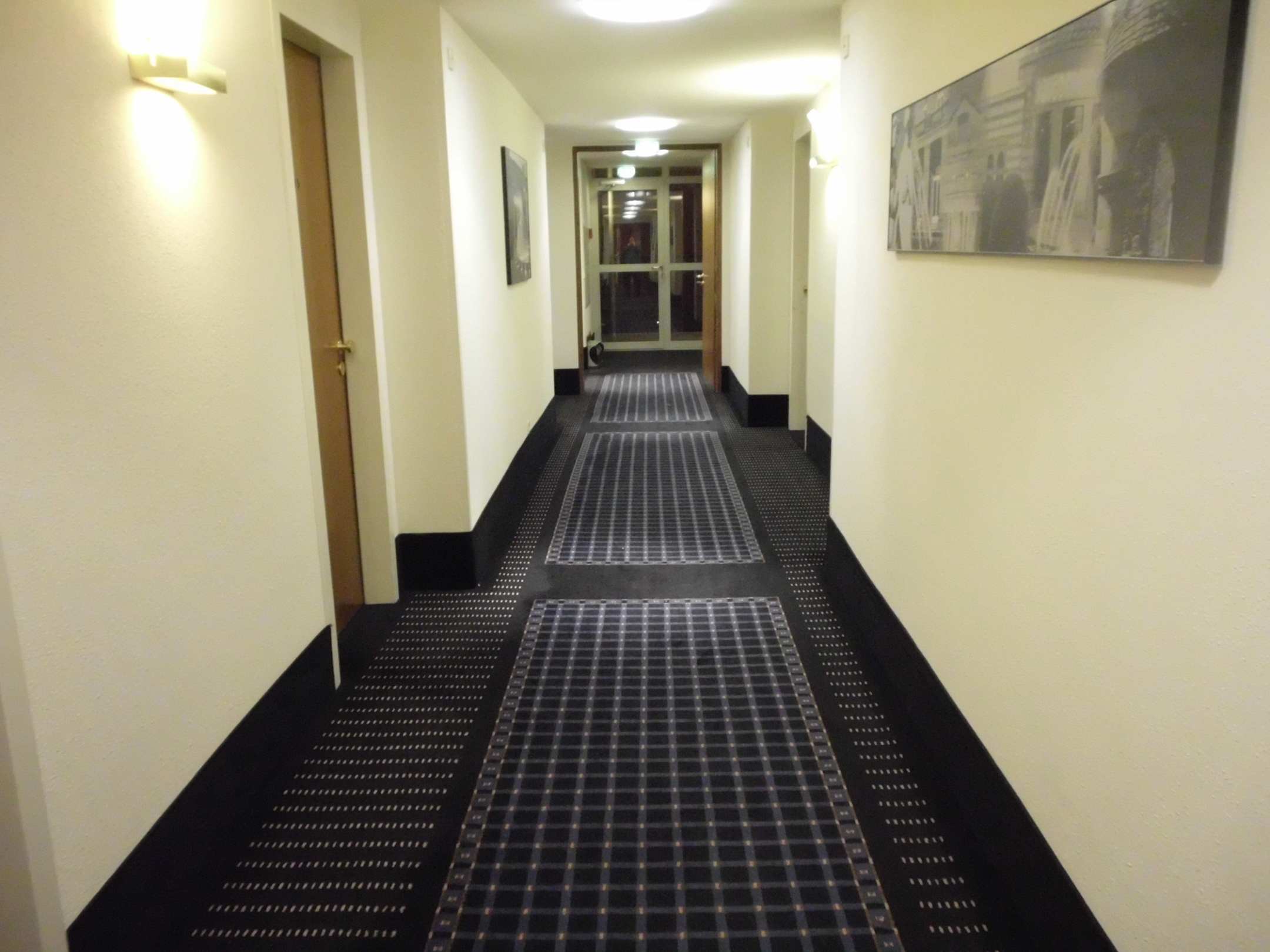 Blick aus dem Zimmer auf den Gang zum Lift