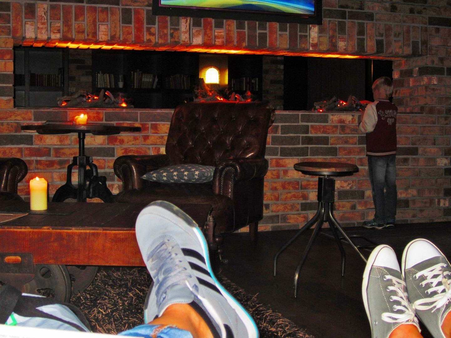In der Lobby sind Chill Areas & Kamin