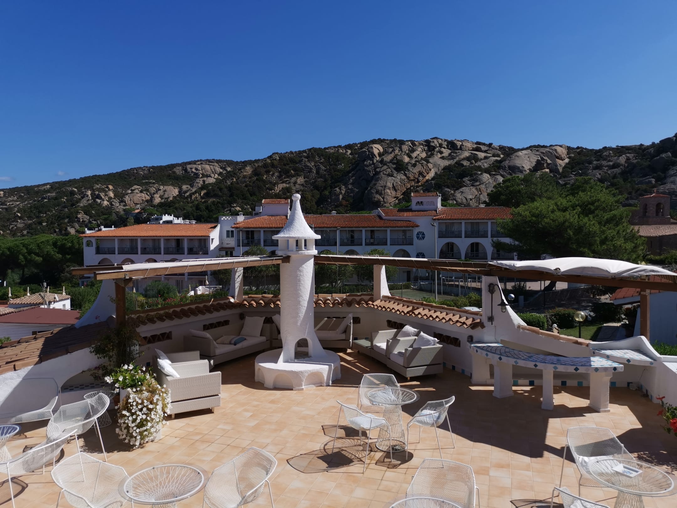 Blick vom Balkon auf die Hotellounge