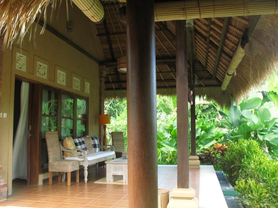 Relax on the patio under the soaring thatched roof of your suite; let your mind drift with the animist spirits into the verdant surrounding to the sound of rushing waters.