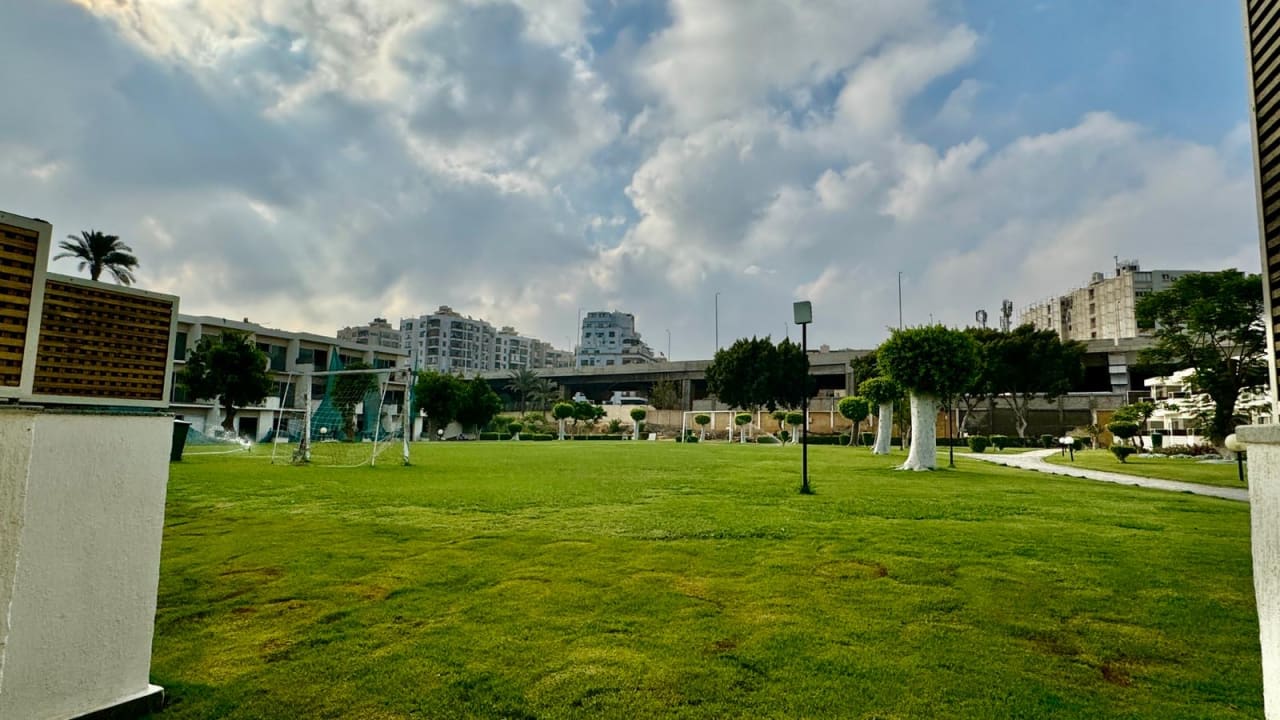 Blick auf Rasen und dahinter die Ringroad