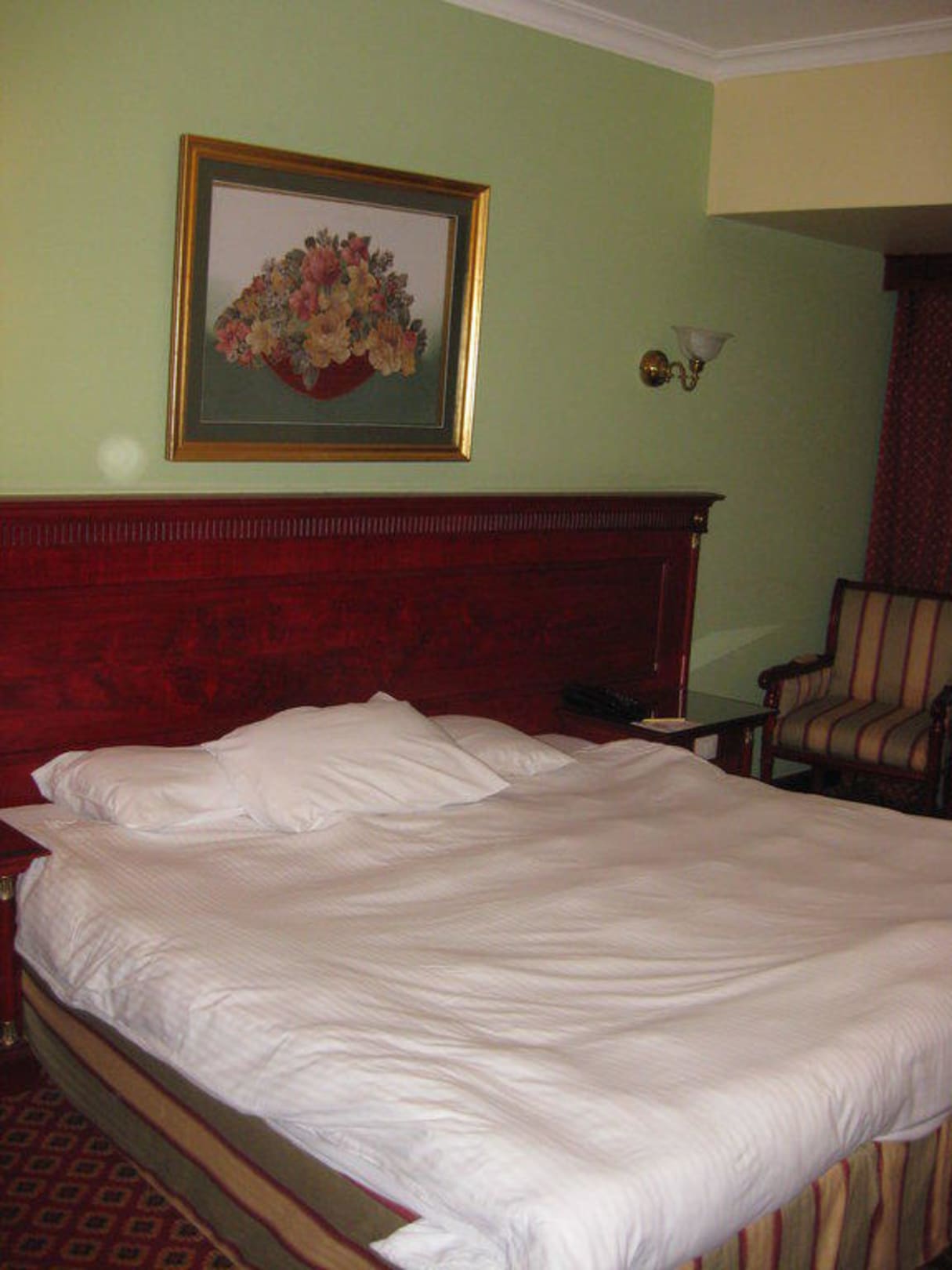 Blick auf das BettDas Bett ist nicht benutzt, sondern frisch! Wir dachten zuerste: Komisch, gar nicht glatt gezogen - gehört aber so ;)