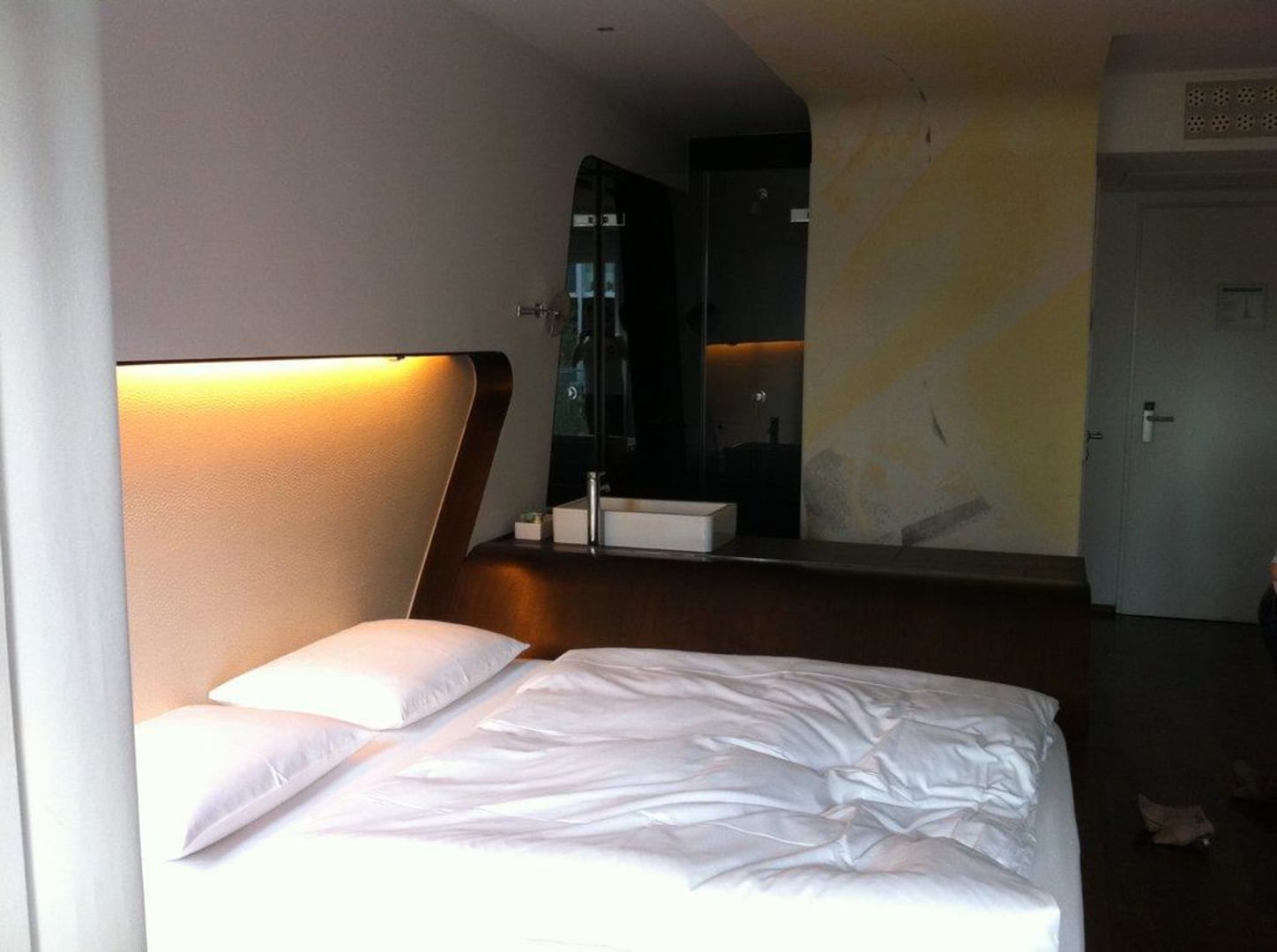 Hinter dem Waschbecken "in der Wand" ist die Dusche mit 2 Glastüren.