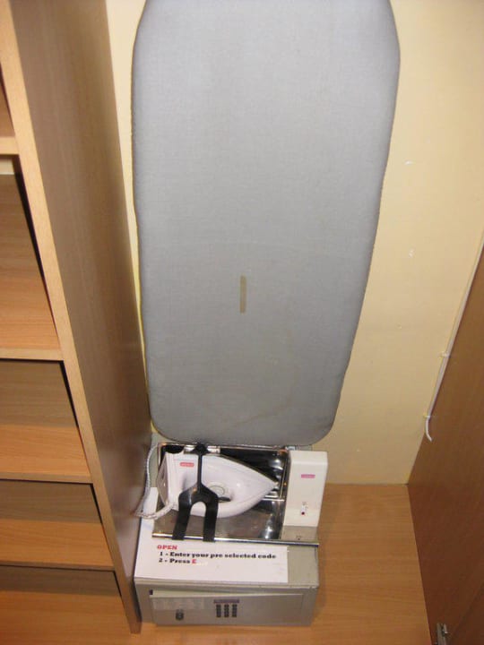 Bügelbrett und Bügeleisen im Zimmer