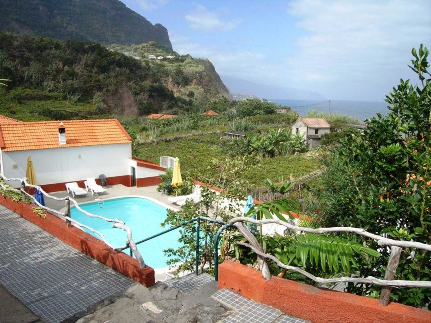 Blick auf den Pool und die umliegende Landschaft