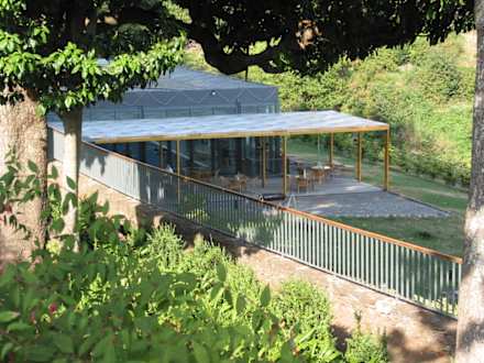 Blick von der Hoteleinfahrt auf die PoolanlageBlick von dem Vorplatz des Hotels auf die Poolanlage des Hotels Quinta Jardim da Serra.