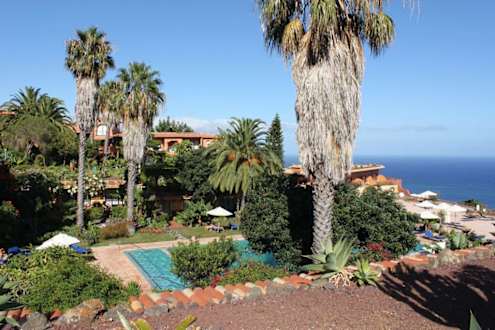 Blick von den Studios auf die Poolanlage