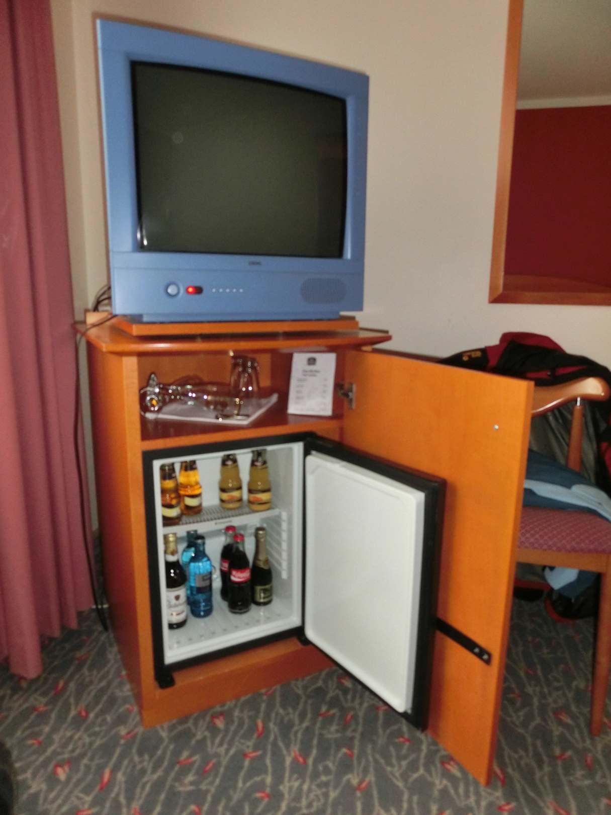 TV und Minibar im Schlafzimmer Zi. 217