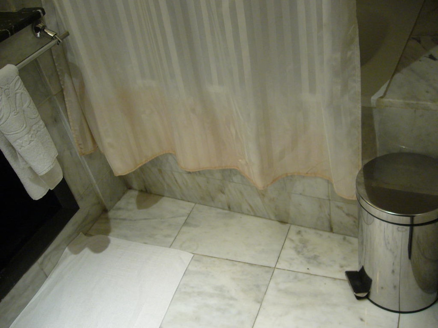 DuschvorhangDen Vorhang sollte man besser außerhalb lassen. Rechts ist der neue Badeimer zu sehen. Erst als ich den alten und defekten Eimer bei der Rezeption auf den Tresen stellte, klappte es dann nach 2Std. im 3. Anlauf mit einem funktionstüchtigen Exemplar.
