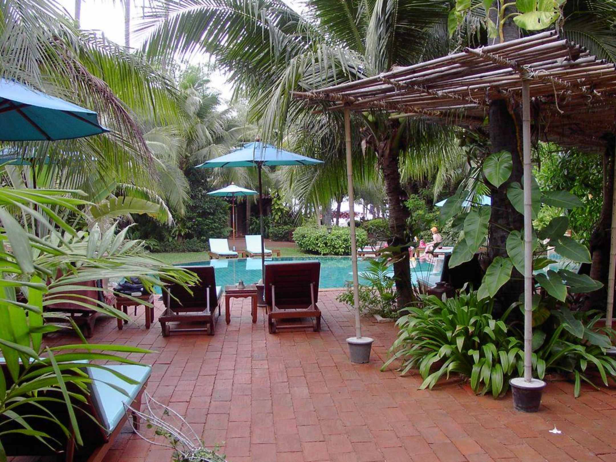 tropischer Baumbestand am Pool
