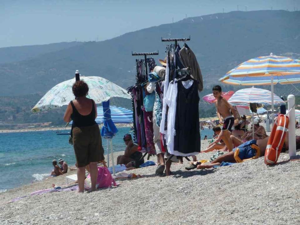 Laufender Kleiderständer am Strand