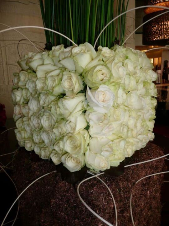 Blumengebinde in der Eingangshalle des Raffles