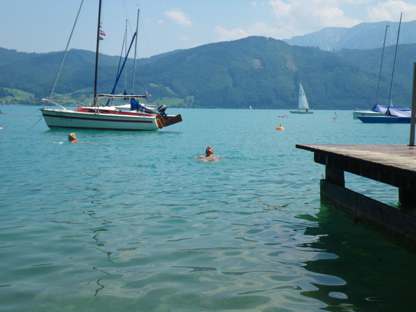 Blick vom Badesteg über den Attersee