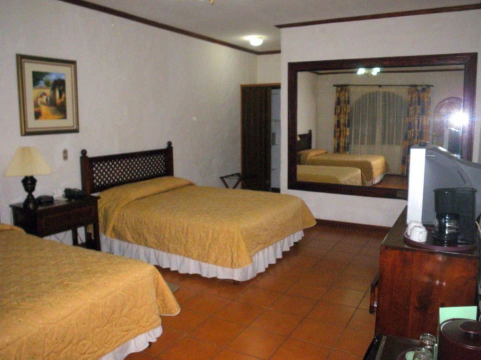 Blick ins Zimmer. Hinten rechts das Bad (hinter dem Spiegel)