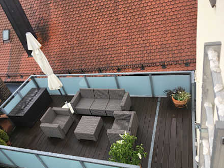 Sicht aus Fenster Zimmer 21 auf Balkon der darunter liegenden Suite