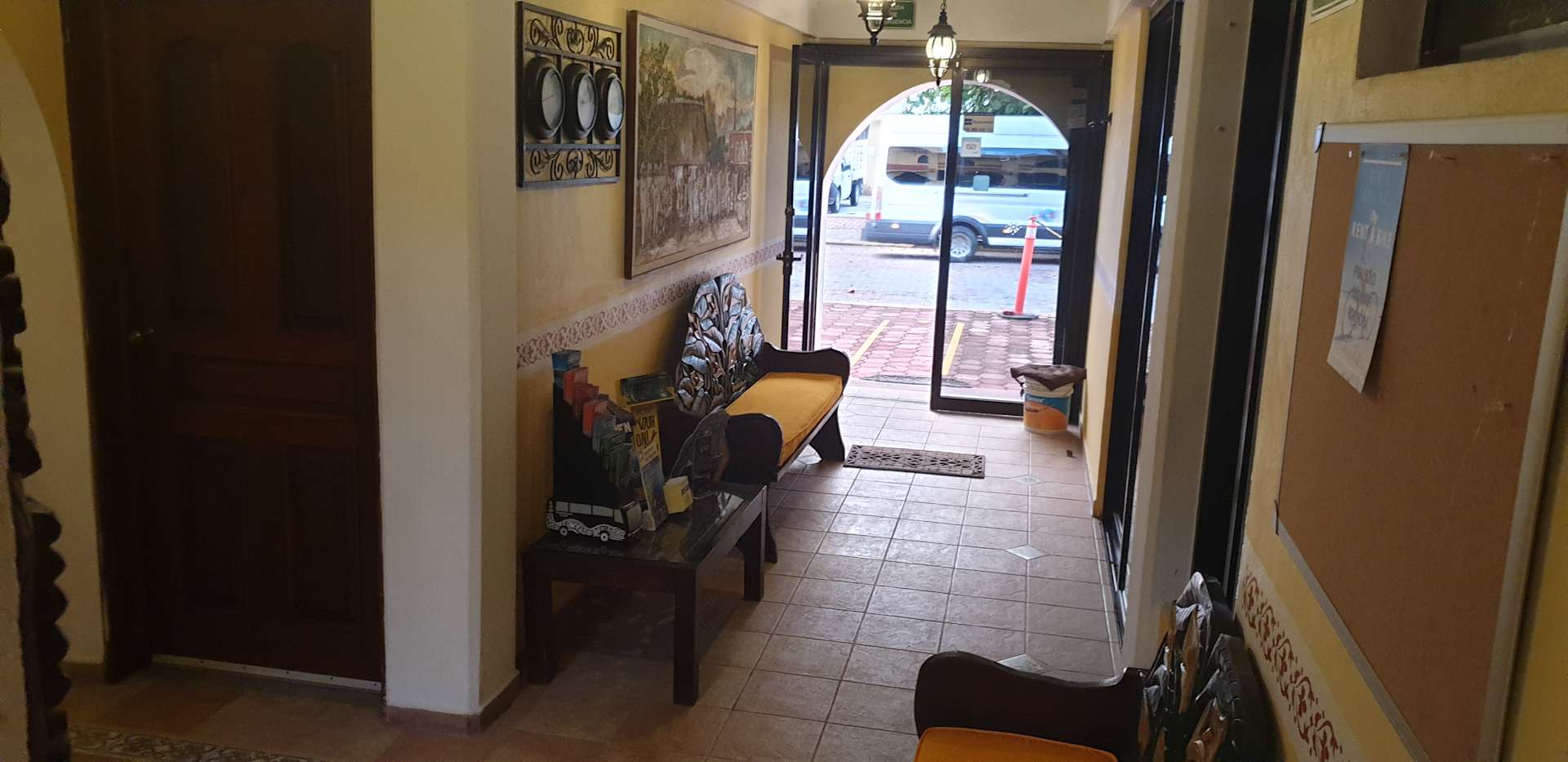 Eingangsbereich mit Lobby (hinter der Tür links)