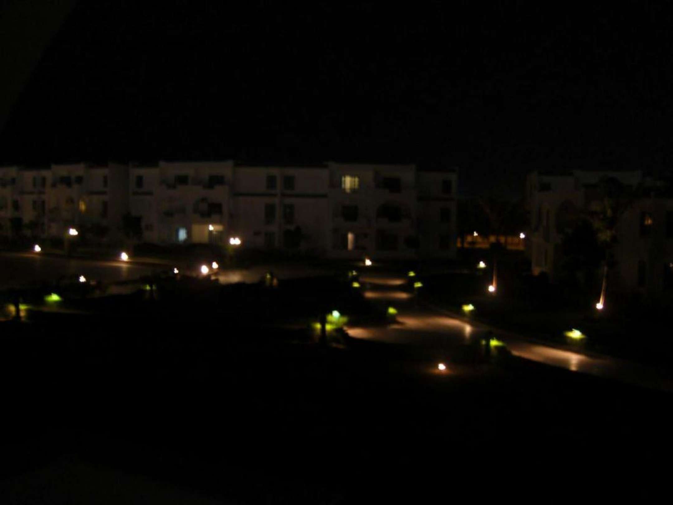 Hotelanlage bei Nacht (vom Balkon aus fotografiert).