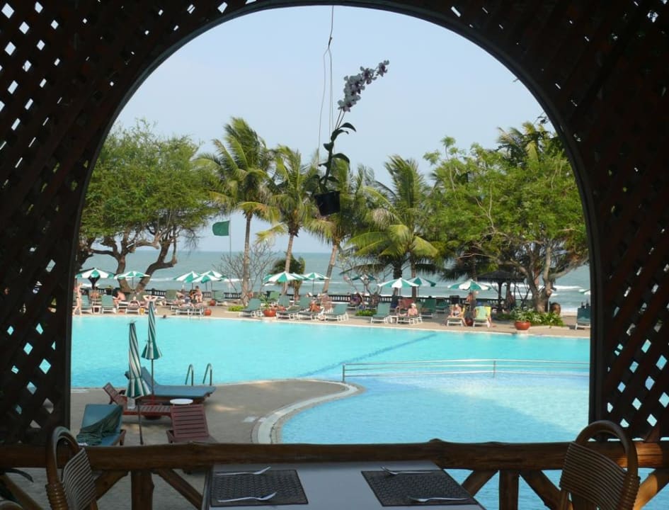 Tolle Lage der Restaurants am Pool, im Hintergrund das Meer
