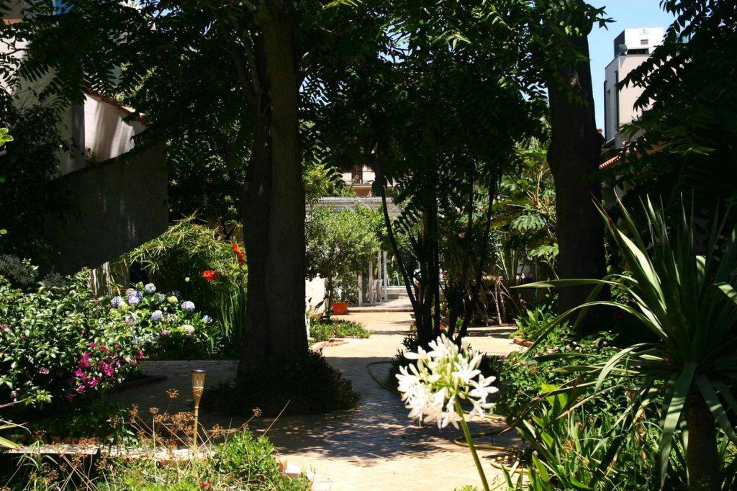 Parkanlage des HotelsZwischen der Rückseite des Hotels und dem swimming pool verläuft ein Weg an den Appartements vorbei zum Privatstrand