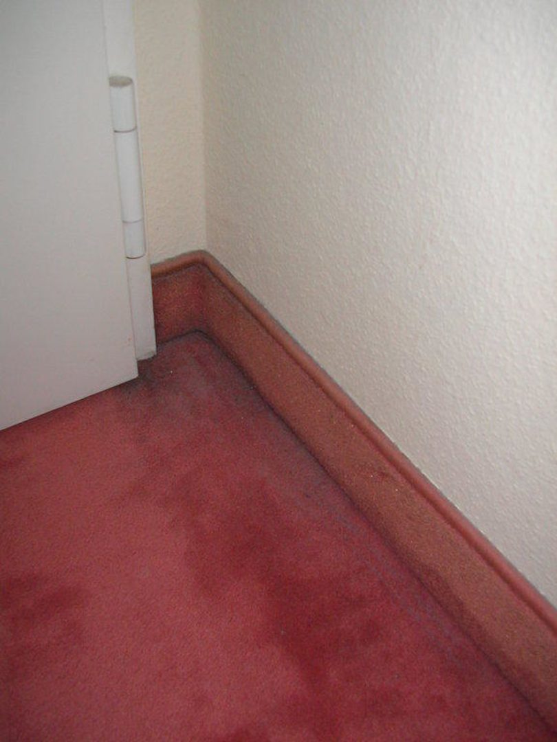 Dreckige Fußböden mit Staub in den Ecken und Flecken im Belag