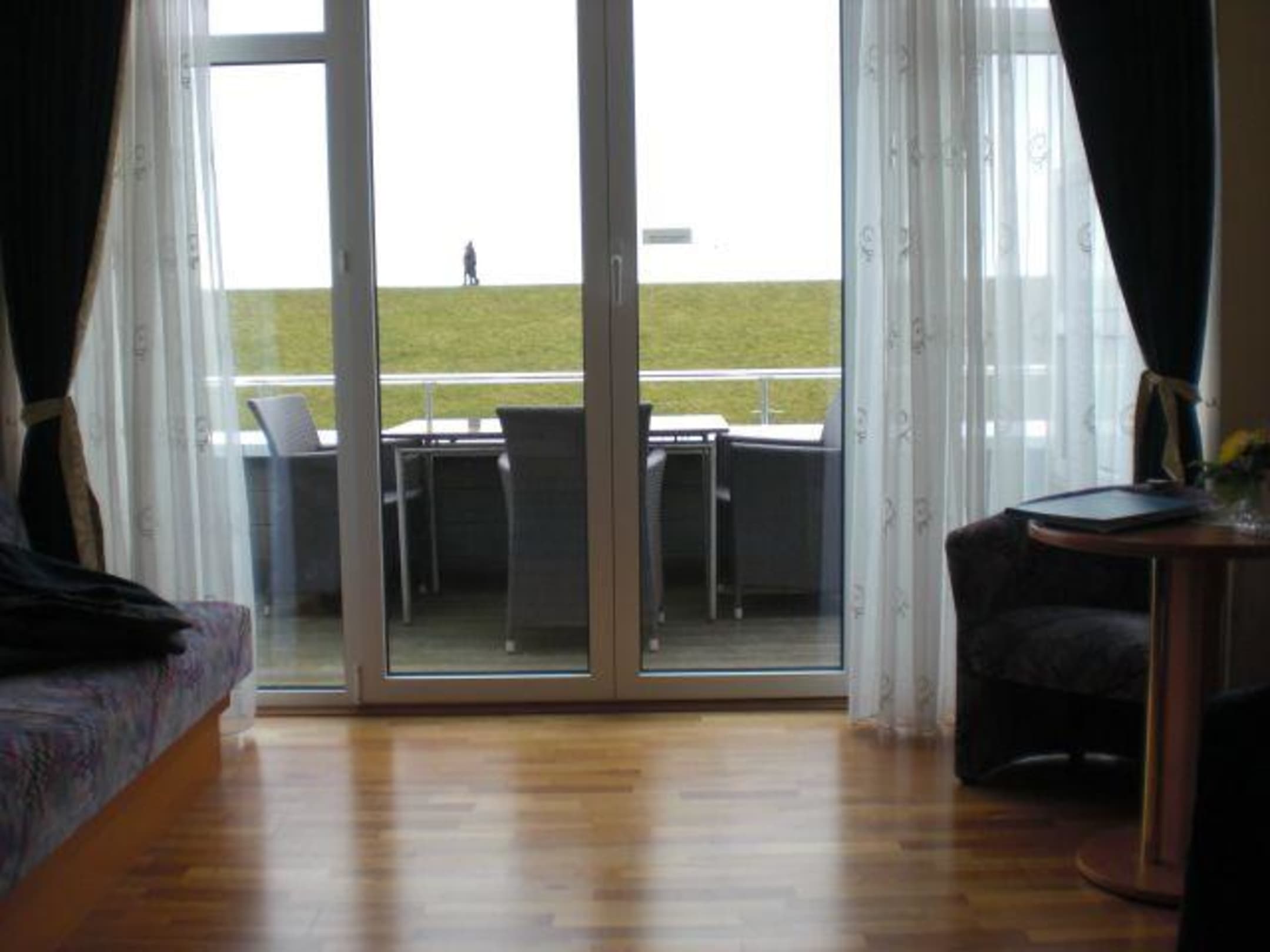 Blick über den Balkon auf den Deich