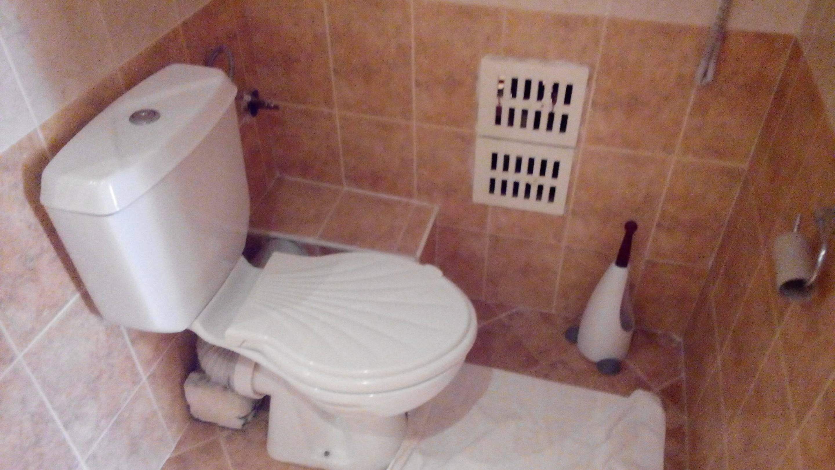 WC mit Ausfluss am Backstein sowie Abfluss an Seit