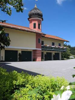 Blick vom Parkplatz auf die Hauskapelle