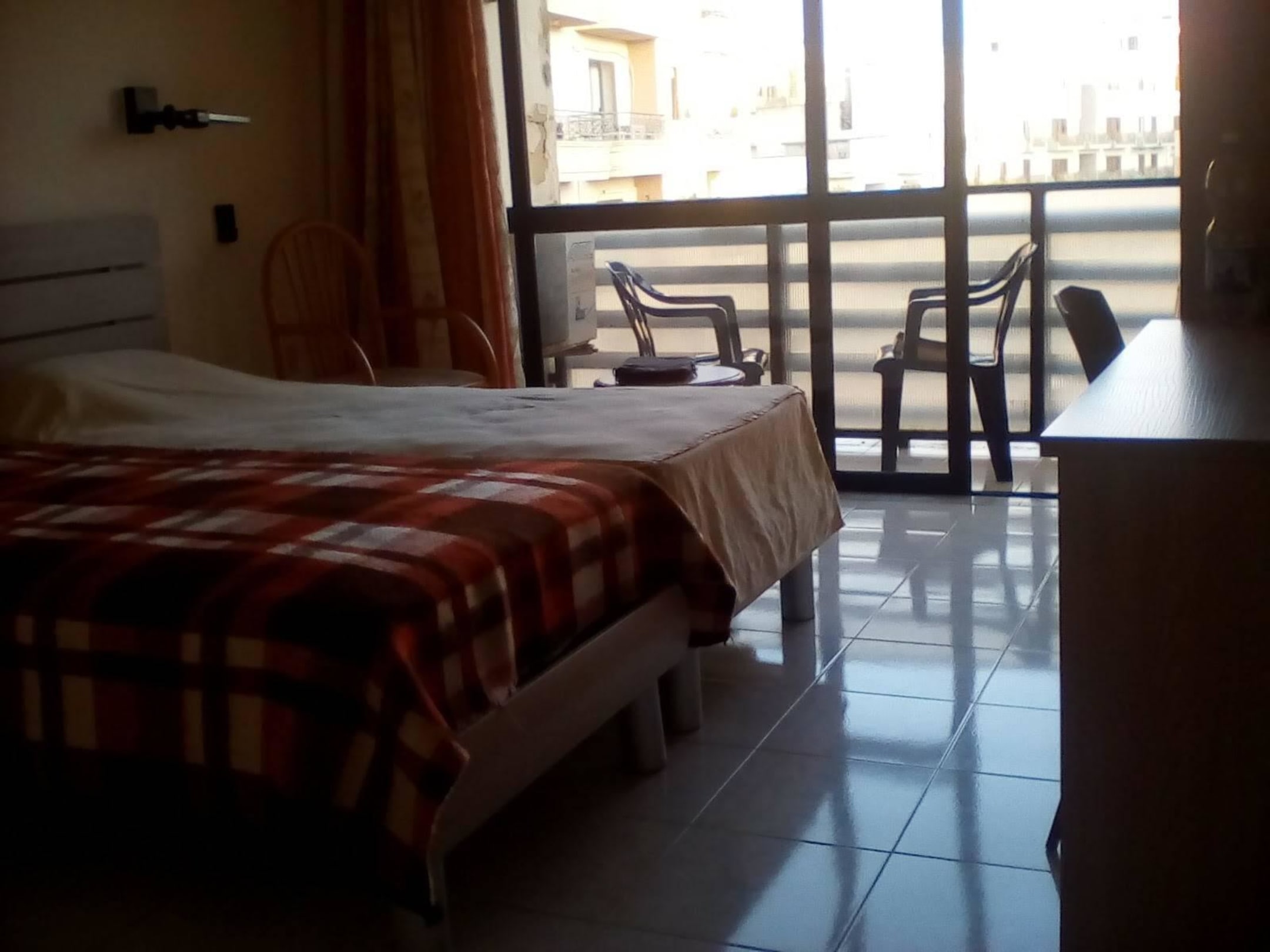 Zimmer mit Blick zur Straße.