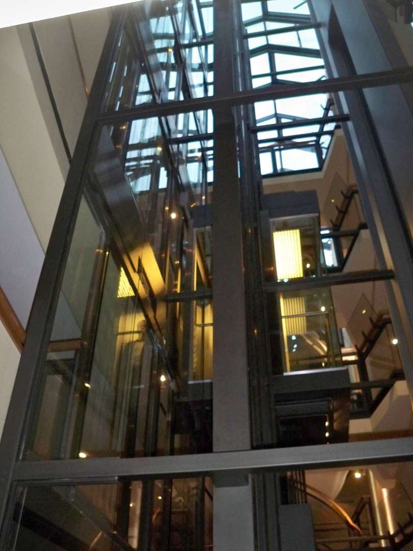 Mit Glasfahrstuhl