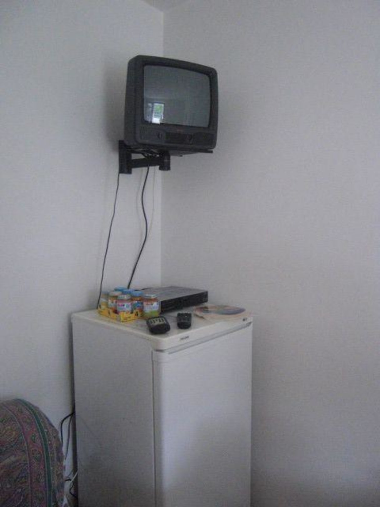 Darunter Kühlschrank, rechts davon die Couch