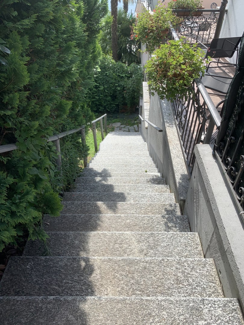 Zugang zum Appartment über diese Treppen, für uns mit Kleinkind/ Kinderwagen nicht möglich.