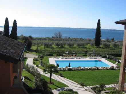 The pool, olive grove and Lake Garda.