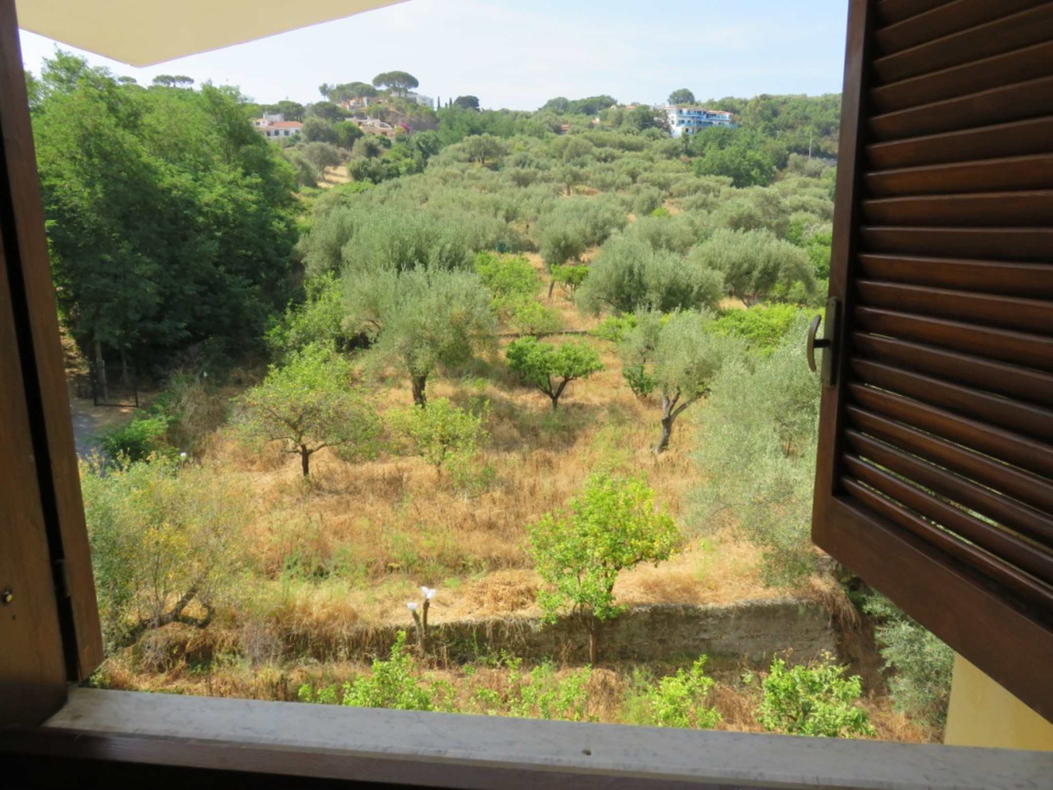 Ausblick vom Zimmer auf einen Zitronen- und Olivenhain.