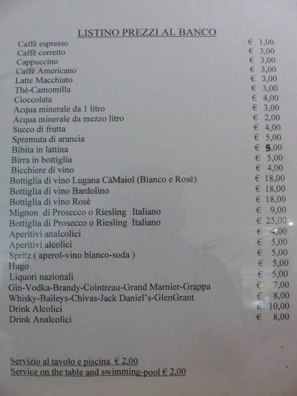 Bar - Getränkekarte